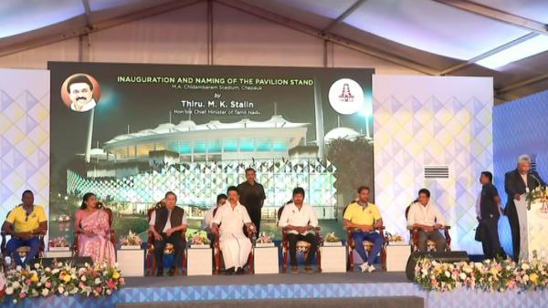 இதன் மூலம் ஒரே மேடையில் முதல்வர், உதயநிதி, தோனி ஆகியோர் கலந்து கொண்டனர். மேலும், சேப்பாக்கம் மைதானத்தில் அமைக்கப்பட்டுள்ள புதிய கேலரி பகுதிக்கு முன்னாள் முதல்வரான கருணாநிதி பெயர் சூட்டப்பட்டுள்ளது. கலைஞர் கருணாநிதி ஸ்டாண்ட் என்று இந்த கேலரிக்கு பெயர் வைக்கப்பட்டுள்ள நிலையில், இது திறந்த பின்னர் போட்டியைக் காணும் அனுபவம் மேம்படும் என்று கூறப்பட்டுள்ளது