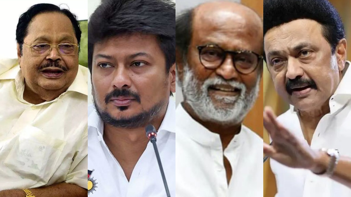 இதற்கு பதில் அளித்த துரைமுருகன், பல்லு விழுந்தபிறகும் நடித்துக்கொண்டிருப்பதால் இளைஞர்களுக்கு வாய்ப்பு கிடைக்காமல் இருக்கிறதா? என்று கூறியுள்ளார். அமைச்சர் துரைமுருகன் பேசியதாவது, சினிமாவில் மூத்த நடிகர்கள் எல்லாம் வயசாகி போய், பல் விழுந்து போய், தாடி வளர்த்து கடைசிக்கட்ட நிலையிலும் நடித்துக் கொண்டிருப்பதால் இளைஞர்களுக்கு வாய்ப்பு இல்லாமல் இருக்கிறதா? அப்படித்தான்.. இவ்வாறு அவர் கூறினர். ரஜினிகாந்த், "ஓல்டு ஸ்டூடண்ட், கருணாநிதி கண்ணிலே விரல்விட்டு ஆட்டியவர் என்று துரைமுருகனை கலாய்த்து பேசியதற்கு அமைச்சர் துரைமுருகன், "பல்லு விழுந்த நடிகர்கள்" என்று கோபமாக கூறினார்.