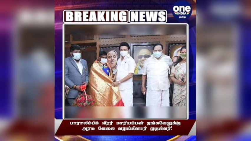 இதனை பெற்றுக்கொண்ட மாரியப்பன் தங்கவேலு நெகிழ்ச்சியுடன் நன்றி கூறினார். குரூப் 1 பணியிடம் கொடுத்தது மகிழ்ச்சியளிப்பதாக கூறிய மாரியப்பன் அரசு வேலை கொடுத்த முதல்வருக்கு நன்றி என்று கூறினார்.