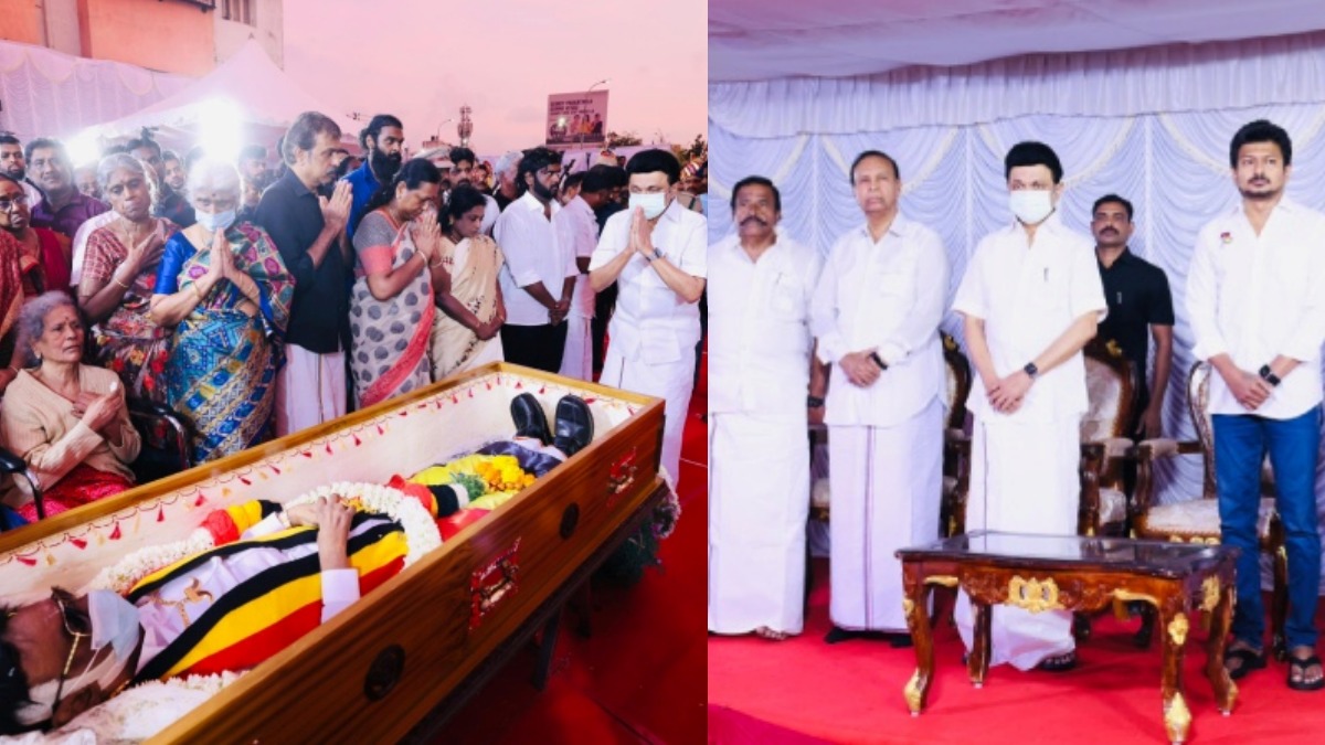 இறுதிச் சடங்கு நிகழ்வில் பங்கேற்ற புகைப்படங்களை ட்விட்டர் தளத்தில் பகிர்ந்துள்ள தமிழக முதலமைச்சர் ஸ்டாலின், "எங்கள் இதயங்களில் நிரந்தரமாக வாழ்வீர்கள் நண்பரே.." என உருக்கமாக பதிவிட்டுள்ளார்.