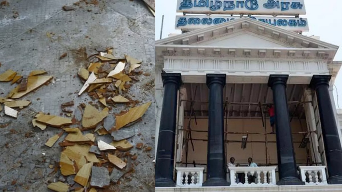 சென்னை தலைமைச் செயலக வளாகத்தில் உள்ள நாமக்கல் கவிஞர் மாளிகை, 10 தளங்களை கொண்டது. அங்கு, தமிழ்நாடு அரசின் பல்வேறு துறை சார்ந்த அலுவலகங்கள் உள்ளன. சுமார் 3000 அலுவலர்கள் இங்கு பணியில் உள்ளனர். இந்த நிலையில், இன்று ஊழியர்கள் பணியில் இருந்தபோது, நாமக்கல் கவிஞர் மாளிகையின் முதல் தளத்தில், வேளாண்மைத் துறை சார்ந்த அலுவலகத்தில் சத்தத்துடன் டைல்ஸ்களுக்கு மத்தியில் விரிசல் ஏற்பட்டது.