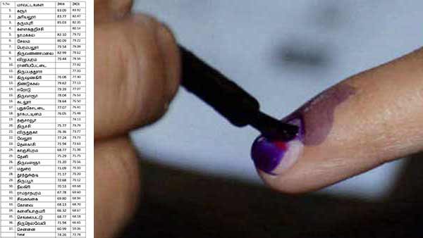 மாவட்டங்களில் 2016-ல் பதிவான வாக்குகள் சதவீதம்; 2021-ல் பதிவான வாக்குகள் சதவீதம் ஒப்பீட்டை கீழே உள்ள படத்தில் பார்க்கலாம்: