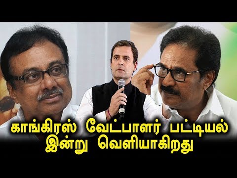 சென்னை: லோக்சபா தேர்தலில் தமிழகத்தில் போட்டியிடும் காங்கிரஸ் வேட்பாளர்கள் பட்டியல் இன்று காலை வெளியாகிறது.
