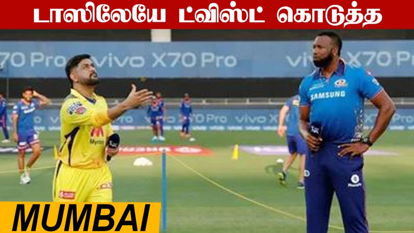மும்பை அணியில் இன்று ரோஹித் சர்மா, ஹர்திக் பாண்டியா இடம்பெறவில்லை. மும்பை அணியில் டி காக், இஷான் கிஷான், சூர்யா குமார் யாதவ், அன்மோல்பிரீத் சிங், கைரன் பொல்லார்ட், சோரப் திவாரி, குர்ணால் பாண்டியா, ஆடம் மில்னே, ராகுல் சாகர், பும்ரா, போல்ட் ஆகியோர் இடம்பெற்று இருந்தனர். இதில் டாஸ் வென்ற சிஎஸ்கே பேட்டிங் தேர்வு செய்தது. மும்பை அணியின் பவுலிங் தொடக்கத்தில் இருந்தே சிறப்பாக இருந்தது.