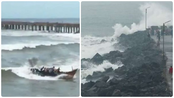 இதனால் படகுகள் கடலுக்குள் இழுத்துச்செல்லப்படுகின்றன. இதனால் பதறியடித்த மீனவர்கள் படாத பாடு பட்டு படகுகளை கடல் நீரில் இழுத்துச்செல்ல விடாமல் தடுத்து வருகின்றனர். புயல் நள்ளிரவு தான் கரையைக் கடக்கும் போது காற்றின் வேகம் இன்னும் அதிகரித்து படகுகள் கடலுக்குள் அடித்து செல்லப்படலாம் என்று அஞ்சிய மீனவர்கள் படகுகளை பாதுகாப்பான இடங்களுக்கு அப்புறப்படுத்தி வருகின்றனர். டிராக்டரில் கட்டி படகுகளை கடலில் இருந்து தொலைவான பகுதிகளில் கொண்டு நிறுத்தி வருவதையும் காண முடிகிறது.
