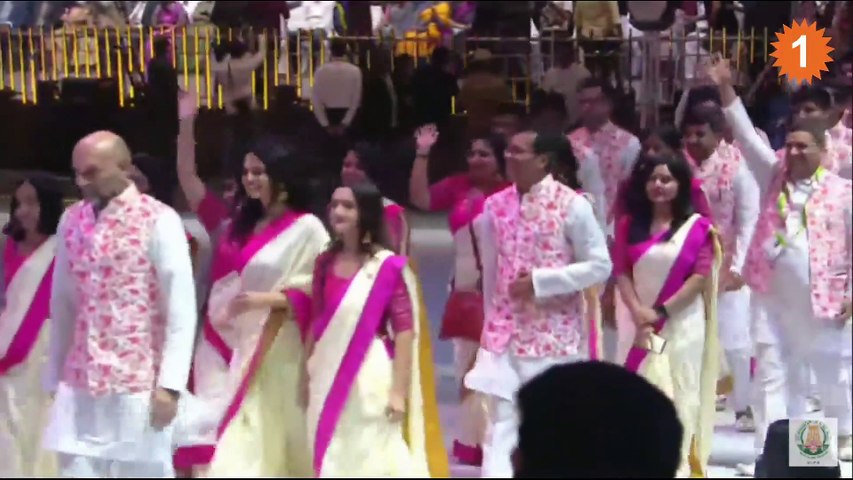 இதில் அணிவகுத்த 186 நாடுகளை சேர்ந்த வீரர்களின் எண்ணிக்கை ஒற்றை இலக்கத்திலேயே இருந்தன. ஆனால், இந்தியாவிலிருந்து மட்டும் பலர் இதில் கலந்துகொண்டனர். பிங்க் நிற உடையணிந்து அணிவகுத்த இந்திய வீரர்களை கண்டதும் முதலமைச்சர் மு.க.ஸ்டாலின் கையசைத்து வரவேற்றார். அரங்கமும் கரகோசத்தால் நிரம்பியது. இந்த நாடுகளின் கொடியை தமிழ்நாடு அரசுப் பள்ளிகளில் நடத்தப்பட்ட செஸ் போட்டிகளில் வெற்றிபெற்று தேர்வு செய்யப்பட்ட 186 மாணவர்கள் ஏந்திச்சென்றனர்.