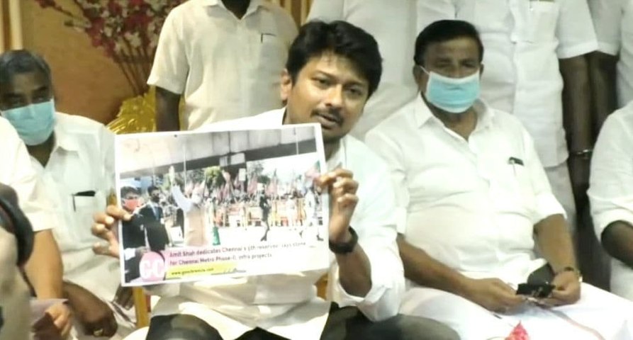 சென்னையில் அமித்ஷாவும் சாலையில் நடந்து சென்று பொதுமக்களின் வரவேற்பை ஏற்றுக் கொண்டார். அவரை ஏன் அதிமுக அரசு கைது செய்யவில்லை? இவ்வாறு உதயநிதி ஸ்டாலின் கூறினார்.