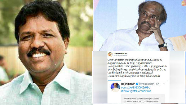இந்நிலையில், பதிவு நீக்கம் குறித்து விழுப்புரம் எம்பி ரவிக்குமார் சொல்லும்போது, "கொரொனா குறித்து தவறான தகவலைத் தருவதாகக் கூறி திரு ரஜினிகாந்த் அவர்களின் ட்வீட் ஒன்றை ட்விட்டர் நிறுவனம் அகற்றியுள்ளது. அரசியல் தளத்திலும் அப்படி வசதி இருந்தால் அவரது கருத்துகள் பலவற்றுக்கும் அதுதான் நேர்ந்திருக்கும்" என்று தெரிவித்துள்ளார்.