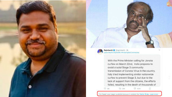 ரஜினியின் ட்விட்டர் பதிவு நீக்குவதற்கு முன்பு அந்த வீடியோவிலேயே "Janata - அதை தமிழ் அல்லது ஆங்கிலத்தில் சொன்ன Owner கோவித்து கொள்வாரா Boss" என்று டாக்டர் செந்தில்குமார் கேள்வி எழுப்பியிருந்தார்.. ட்விட்டரை நீக்கிய பிறகும் ஒரு பதிவு போட்டுள்ளார் எம்பி செந்தில்குமார்.