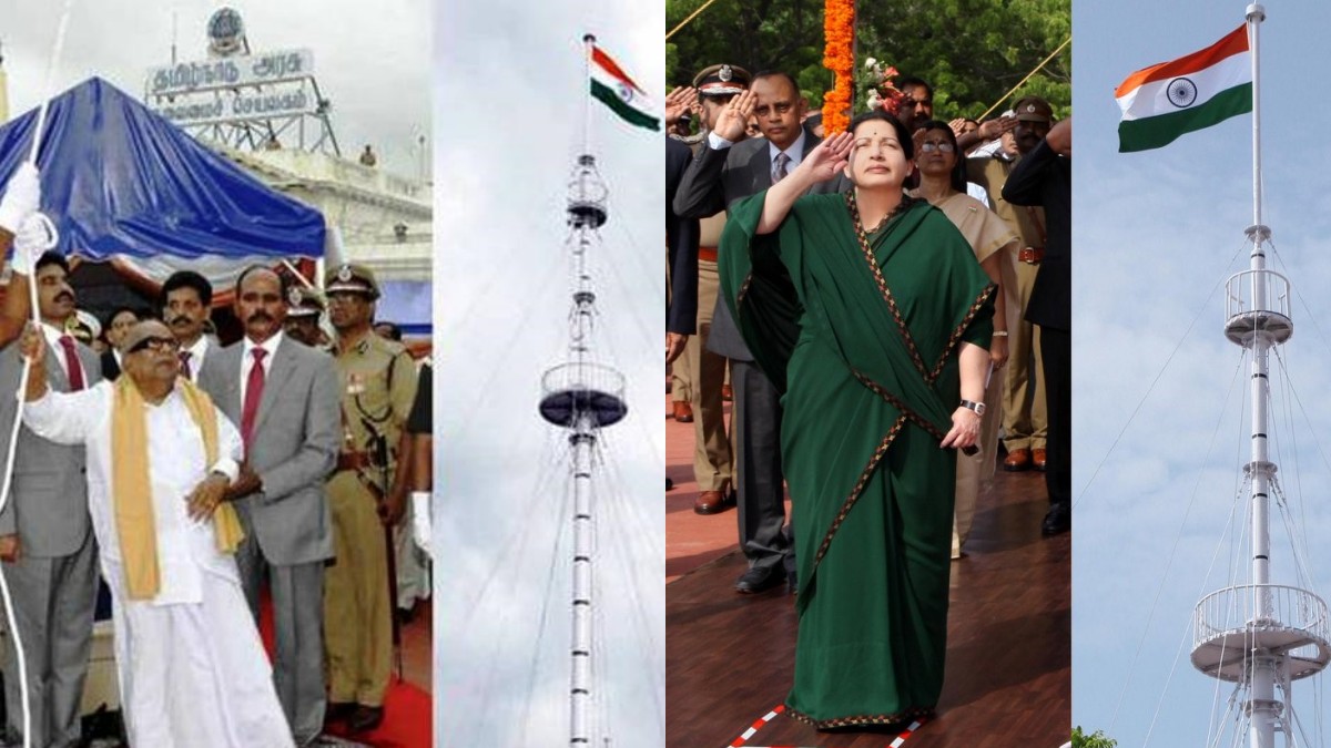 கருணாநிதி முதலமைச்சராக இருந்தபோது அவர் முன்னெடுத்த தீவிர முயற்சியால், 1974 முதல் மாநில முதல்வர்கள் சுதந்திர தினத்தன்று தேசிய கொடியேற்றலாம் என்ற உரிமை பெறப்பட்டது. 1687-1692 வரை, சென்னை மாகாண ஆங்கிலேய ஆளுநராக இருந்த 'யேல்' என்பவரின் காலகட்டத்தில் 150 அடி மரத்திலான கொடி கம்பம் நிறுவப்பட்டது.
