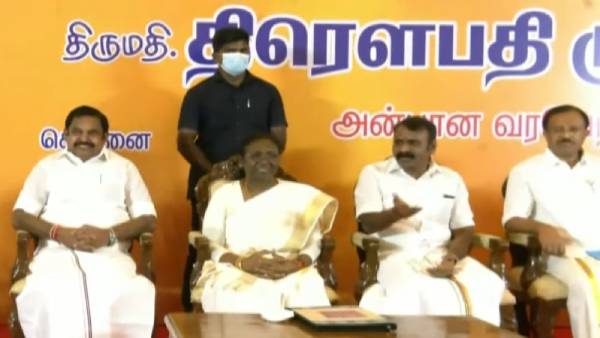 அதிமுக தலைவர்களை நேரில் சந்தித்து திரௌபதி முர்மு ஆதரவு கோரினார். அவருக்கு எடப்பாடி பழனிசாமி பொன்னாடை போர்த்தி வரவேற்றார். குடியரசுத் தலைவர் தேர்தலில் அதிமுக திரௌபதி முர்முவை ஆதரிக்கும் எனத் தெரிவித்தார். நிகழ்ச்சி நடைபெறும் இடத்தில் இருந்து எடப்பாடி பழனிசாமி கிளம்பும் வரை, ஓபிஎஸ் விழா மேடைக்கு வரவில்லை. அதன் பின்னர் தனியாக வந்தே ஆதரவைத் தெரிவித்தார்.