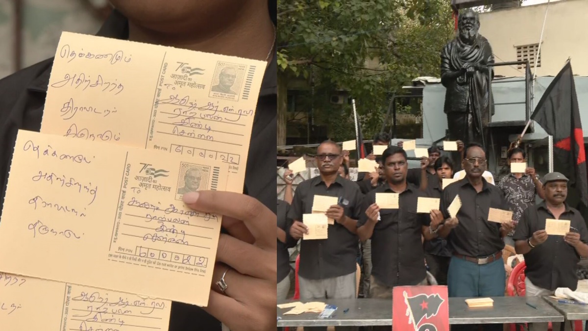 ஆளுநர் ரவிக்கு 1000 அஞ்சல் அட்டைகள்.. கைப்பட எழுதிய வாசகம்! திராவிடர் விடுதலைக் கழகம் போராட்டம்!