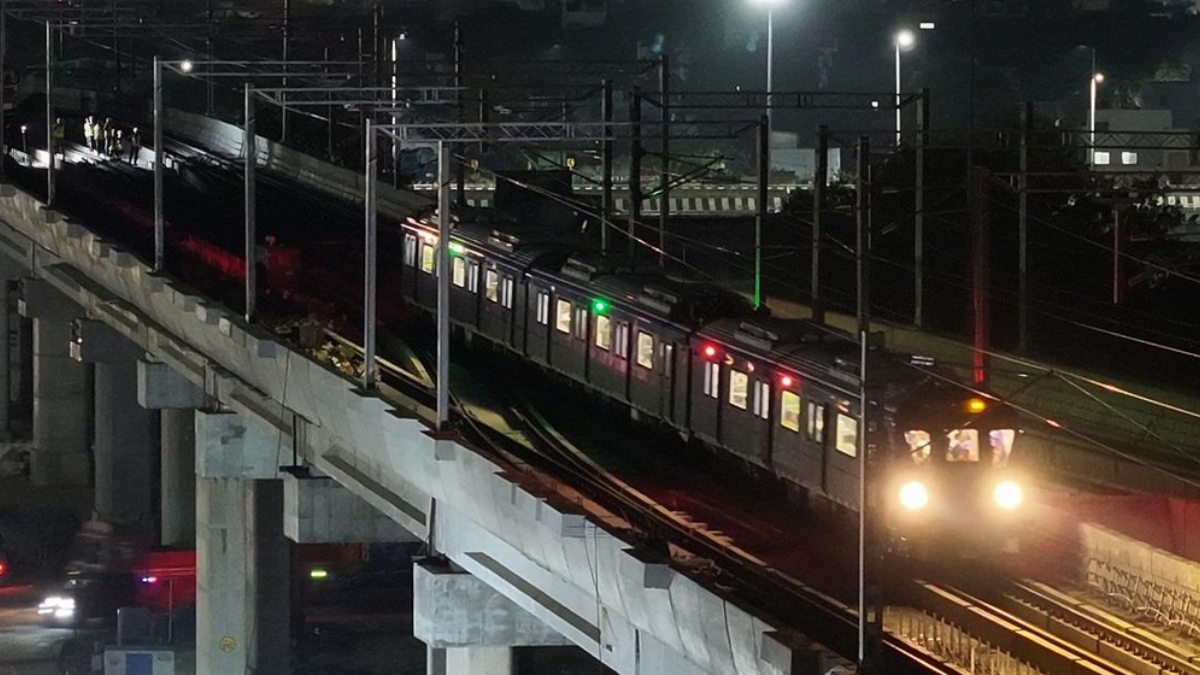 பின்னர், இந்த வழித்தடத்தில் சோதனை வாகனம் ஒன்று இயக்கப்பட்டது. ஆனால், ரயில் வருவதற்கு முன்பே தண்டவாள மின் வயரில் திடீரென அறுந்து விழுந்தன. ரயில் பாதை அருகில் இருந்த மின் விநியோக பெட்டிகளும் வெடித்துச் சிதறியுள்ளது.