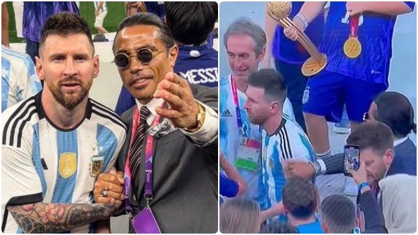 இந்த நிலையில் கோப்பையை வென்றதற்கு பின்னால் மைதானத்தில் வெற்றி கொண்டாட்டங்கள் களை கட்டியது. இந்த கொண்டாட்டங்களில் துருக்கியைச் சேர்ந்த பிரபல சமையல் கலைஞரான சால்ட் பே கலந்து கொண்டார். உலகின் மிகப் பிரபலமான பலரும் சால்ட் பே வாடிக்கையாளர்கள் என்பது குறிப்பிடத்தக்கது. இறைச்சியை பல வழிகளில் சமைத்த பின்னர் அதில் உப்பை வீசும் அழகுக்கு அவருக்கு கோடிக்கணக்கான ரசிகர்கள் உள்ளனர். இந்த நிலையில் அர்ஜென்டினாவின் வெற்றி கொண்டாட்டத்தில் கலந்து கொண்ட சால்ட் பே அர்ஜென்டினாவின் கோப்பையை கையில் ஏந்தி புகைப்படம் எடுத்தார்.