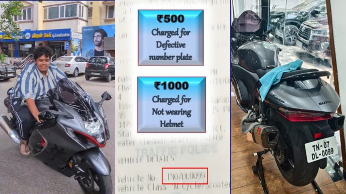 இதை அடுத்து அந்த வாகனத்தின் எண்ணை வைத்து அபராதம் வித்து இருக்கின்றனர் சென்னை போக்குவரத்து காவல்துறையினர். அதாவது விதி மீறிய நம்பர் பிளேட்டுக்காக 500 ரூபாய் அபராதமும், ஹெல்மெட் அணியாததற்காக இருப்பானுக்கு ஆயிரம் ரூபாய் அபராதம் என மொத்தம் 1500 ரூபாய் அபராதம் விதித்துள்ளனர் சென்னை பெருநகர போக்குவரத்து காவல்துறையினர். மேலும் பைக்கின் நம்பர் பிளேட் மாற்றப்பட்ட புகைப்படத்தையும் சமூக வலைதளத்தில் வெளியிட்டுள்ளனர்.