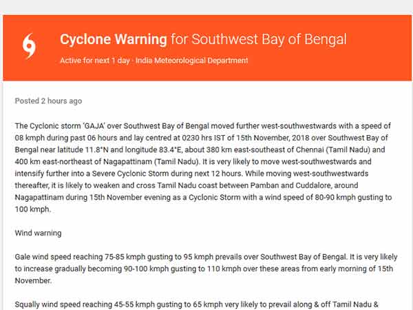 கஜா புயலுக்கு எதிராக களமிறங்கும் டெக்னாலஜி.. மக்களுக்கு கரம் கொடுக்கும் கூகுளின் சிறப்பு பக்கம்!