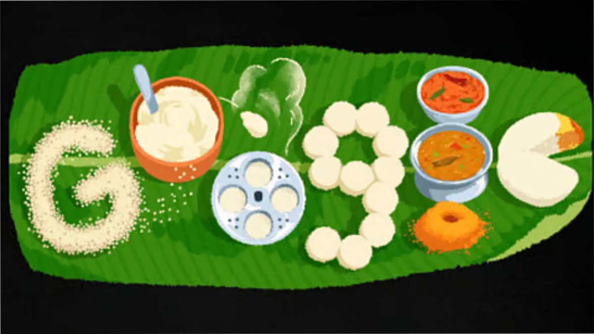 அதனை நினைவுகூரும் விதமாக, இன்று கூகுள் டூடுளில் வாழை இலையில் பரிமாறப்பட்ட இட்லி, சாம்பார், சட்னி, இட்லி மாவு, இட்லிப் பொடி ஆகியவை இணைந்து வெளியிட்டுள்ளது நம் தென்னிந்திய உணவின் உலகளாவிய தாக்கத்தை வெளிப்படுத்துகிறது.