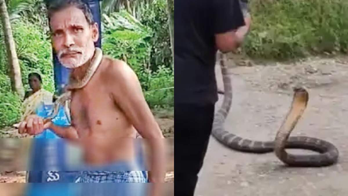 ஆந்திரா மாநிலம் காக்கிநாடா அருகே புதுச்சேரி மாநிலம் ஏனாம் பிராந்தியத்தில் உள்ள தரியலதிப்பா என்ற கிராமத்தை சேர்ந்தவர் கொள்ளப்பள்ளி கொண்டா. 50 வயதான இவர் எந்நேரமும் மதுபோதையிலேயே இருப்பாராம்.. சம்பவத்தன்றும் தலைக்கேறிய போதையில் கொள்ளப்பள்ளி கொண்டா இருந்தபோது, வீட்டுக்கு பக்கத்தில் ஒரு நல்ல பாம்பு ஊர்ந்து வந்துள்ளது.. முழு போதையிலிருந்தவர், நல்ல பாம்பை பார்த்ததுமே பாய்ந்து பிடிக்கபோனார்..