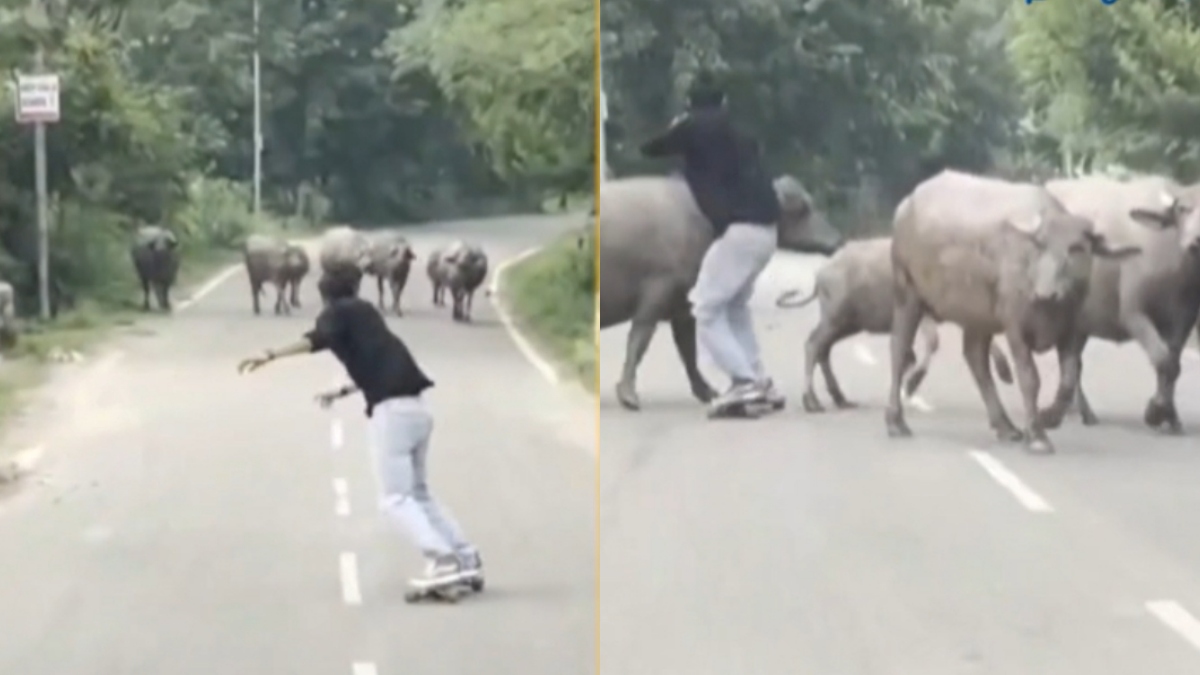 ஸ்டைலிஷ்ஷாக ரோட்டில் ஸ்கேட்டிங் செய்துவரும்போதே, எதிரே எருமை மாடுகளின் கூட்டம் ஒன்று வருகிறது. 5, 6, எருமை மாடுகள் சாலையை முழுக்க ஆக்கிரமித்து மெல்ல நடந்து வந்துகொண்டிருந்தன.