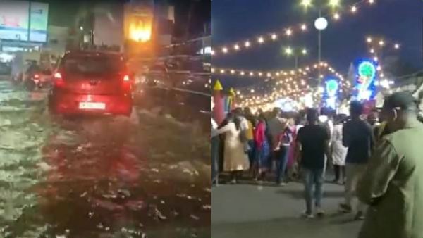 அப்போது திடீரென இரவு 8.45 மணிக்கு கனமழை கொட்டியது. இதனால் மக்கள் ஆங்காங்கே அமைக்கப்பட்டுள்ள உணவு ஸ்டால்களில் தஞ்சமடைந்தனர். கிட்டதட்ட 45 நிமிடங்களுக்கு விடாமல் கனமழை பெய்தது. கடற்கரை பக்கம் என்பதால் காற்று பயங்கரமாக வீசியது. இடி மின்னல் சப்தமும் அச்சத்தை ஏற்படுத்தியது.
