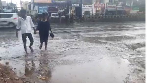 சென்னையில் செவ்வாய்கிழமை மாலை நேரத்தில் வானம் மேக மூட்டத்துடன் காணப்பட்ட நிலையில் குளிர்ந்த காற்று வீசியதில் கனமழை கொட்டித்தீர்த்தது. அடையாறு, நுங்கம்பாக்கம், சாலிகிராமம், வளசரவாக்கம், சென்னையின் புறநகர் பகுதிகளில் வெளுத்துக்கட்டிய மழையால் சாலைகளில் வெள்ளம் கரைபுரண்டு ஓடியது.