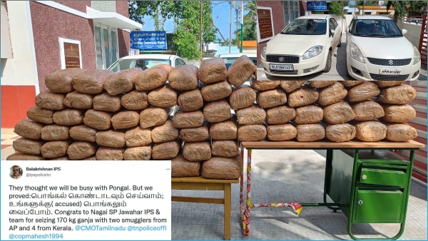 அதில், ''நாங்க பொங்கல் கொண்டாட்டத்துல இருக்குறதா நினைச்சிட்டாங்க. நாங்க பொங்கலும் கொண்டாடுவோம், அக்யூஸ்ட்டுக்கு பொங்கலும் வைப்போம். நாகப்பட்டினம் எஸ்.பி ஜவஹர் மற்றும் அவரது குழுவினருக்கு எனது வாழ்த்துகள். 170 கிலோ கஞ்சாவை கைப்பற்றி ஆந்திரா மற்றும் கேரளாவைச் சேர்ந்த கடத்தல்காரர்களைப் பிடித்திருக்கிறார்கள். வாழ்த்துகள்'' என்று குறிப்பிட்டிருக்கிறார்.