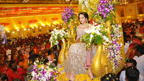 சமீபத்தில் நடந்த மேல்மருவத்தூர் பங்காரு அடிகளார் வீட்டு திருமணம்தான் டாக் ஆஃப் த டவுன். திருமண வரவேற்பு நிகழ்ச்சியில் வழக்கமான இன்னிசை கச்சேரியைத்தாண்டி கரகாட்டம், மயிலாட்டம், ஒயிலாட்டம் என்று பட்டையை கிளப்பினார்கள். வண்ண வண்ண மலர்களைப் போல ஆடை அணிந்த இளம்பெண்கள் சூழ்ந்து வர, மணப்பெண்ணை இளவரசியைப் போல பல்லக்கில் தூக்கி வந்து அசத்தினார்கள். வந்திருந்தவர்களுக்கு பெரிய வெள்ளித்தட்டில் விதவிதமாக விருந்து படைத்த காட்சிகளும் இணையத்தில் வைரலாக வலம் வருகின்றன.