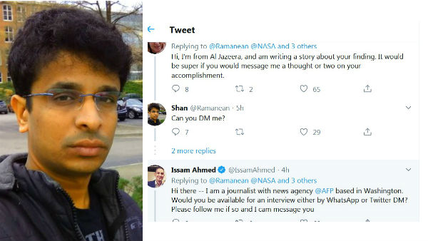 தற்போது நாசாவுக்கே வழிகாட்டியாக இருந்த சண்முக சுப்பிரமணியனை ஒட்டுமொத்த உலகமும் வியப்புடன் திரும்பிப் பார்க்கிறது. சண்முக சுப்பிரமணியன் ட்விட்டர் பக்கத்தில் உலகின் முன்னணி ஊடகங்களின் மூத்த பத்திரிகையாளர்கள் அவரை தொடர்பு கொள்வது எப்படி? உங்களுக்கு இ மெயில் என்ன? எங்களுக்கு எப்போது பேட்டி தருவீர்கள்? என வரிசை கட்டி முற்றுகையிட்டு நிற்கின்றனர்.
