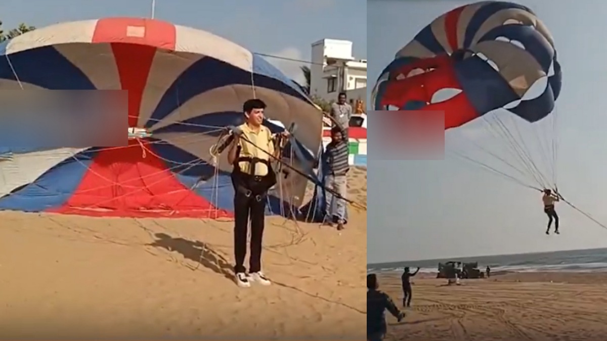 100 சதவீத வாக்களிப்பு! திருவான்மியூர் கடற்கரையில் ஜெ.ராதாகிருஷ்ணன் செய்த பாரா கிளைடிங்!