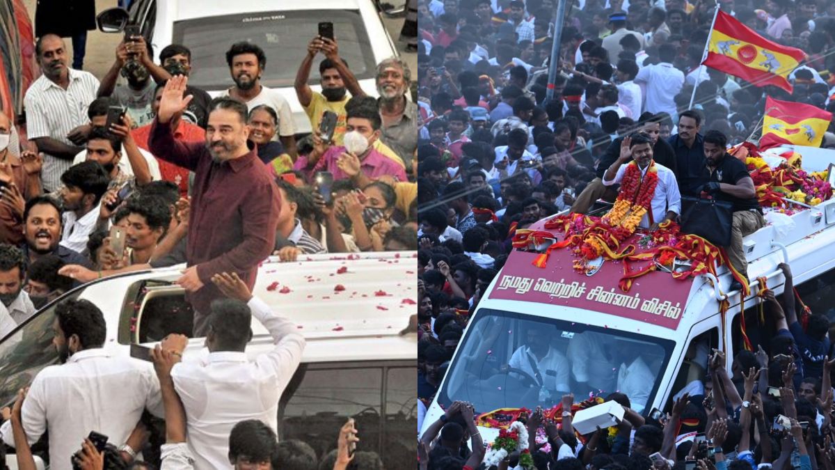 தமிழக வெற்றிக் கழக தலைவர் விஜய் திருச்சி கிழக்கு மற்றும் பெரம்பூர் ஆகிய தொகுதிகளில் போட்டியிடுகிறார். இந்த நிலையில், தமிழக வெற்றிக் கழக தலைவர் போட்டியிடும் பெரம்பூர் மற்றும் திருச்சி கிழக்கு ஆகிய தொகுதிகளில் அவருக்கு எதிராக திமுக கூட்டணியை ஆதரித்து நடிகரும் மக்கள் நீதி மய்யம் கட்சியின் தலைவருமான எம்பி கமல்ஹாசன் பரப்புரை மேற்கொள்ள உள்ளார்.