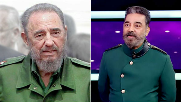 சென்னை: அப்படியே பிடல் காஸ்ட்ரோ மாதிரியே கெட்டப்பில் வந்து நின்ற கமலை பார்த்ததுமே ஒட்டுமொத்த பார்வையாளர்களும் ஒருகணம் உணர்ச்சிவசப்பட்டுவிட்டனர்.. ராத்திரியோடு ராத்திரியாக கமலின் இந்த புது கெட்டப்பை சோஷியல் மீடியாவில் டிரோல் செய்தும் வருகின்றனர்.