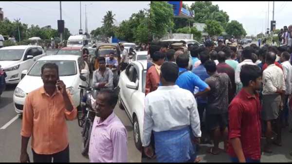 இதனால் கிழக்கு கடற்கரை சாலையில் புதுச்சேரியிலிருந்து சென்னைக்கு வரக்கூடிய மார்கத்திலும், சென்னையிலிருந்து புதுச்சேரி செல்லக்கூடிய மார்கத்திலும் வாகனங்கள் அணிவகுத்து நிற்கின்றன. நீண்ட நேரமாக போக்குவரத்து சீராகாத நிலையில் போலீசார் அங்கு வந்து பொதுமக்களிடம் பேச்சுவார்த்தையில் ஈடுபட்டனர். அப்போது கார்கள் வந்த மக்கள் பலர் அதன் மீது ஏறி நின்று போராட்டத்தை பார்வையிட்டனர்.