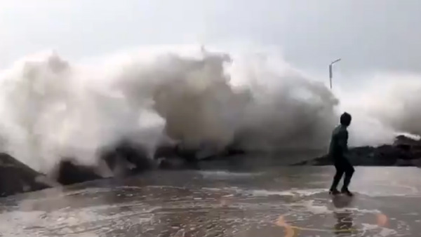 ஆளையே சுருட்டி உள்ளே இழுத்து செல்லும் அளவுக்கு மிகவும் ஆக்ரோஷமாக வேகமாக கடல் அலைகள் எழுந்தன. அரசு அறிவுறுத்தியும் இந்த காட்சிகளை பொதுமக்கள் கண்டனர். தங்கள் செல்போன்களில் வீடியோவாகவும் எடுத்தனர். மிகவும் ஆபத்தாக உள்ளது.
