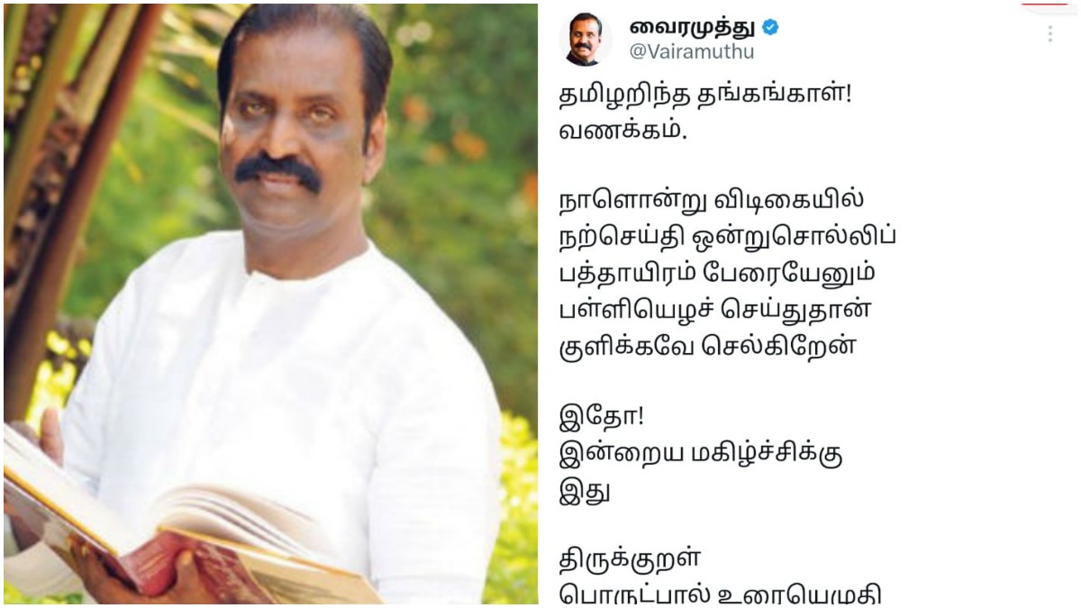 இதுகுறித்து கவி பேரரசு வைரமுத்து தனது எக்ஸ்வலைதள பக்கத்தில் கூறியிருப்பதாவது: