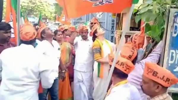 நிறுவன நாளும் அதுவுமாக.. பாஜக கொடியை தலைகீழாக ஏற்றிய குஷ்பு.. பதறிப்போன தொண்டர்கள்