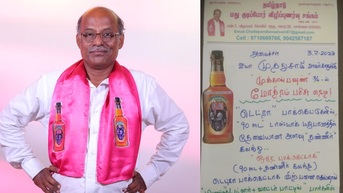 இந்த நிலையில் அமைச்சர் முத்துசாமிக்கு முக்கால் பவுன் மோதிரம் பரிசாக வழங்கப்படும் என மது குடிப்போர் விழிப்புணர்வு சங்கத் தலைவர் செல்லபாண்டியன் தெரிவித்துள்ளார். இது குறித்து அவர் வெளியிட்டுள்ள செய்திக் குறிப்பில், டெட்ரா பாக்கெட்டுகளில் 90 மில்லி டாஸ்மாக் மதுபானத்தில் தேவையான அளவு தண்ணீர் கலந்து ... ஒரே பாக்கெட்டாக விற்பனை செய்ய வேண்டும்.