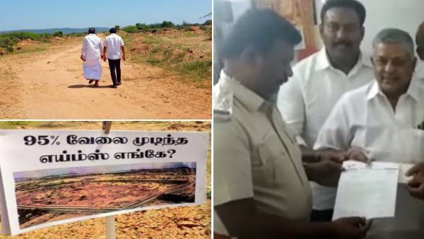 இந்த நிலையில், மதுரையில் புதிதாக கட்டப்பட்டு இருந்த எய்ம்ஸ் மருத்துவமனையின் கட்டிடங்களை காணவில்லை என திமுகவினர் ஆண்டிப்பட்டி காவல்நிலையத்தில் புகார் மனு அளித்து உள்ளனர். அவர்கள் தங்கள் மனுவில், "பாஜக தலைவர் ஜே.பி.நட்டா சொன்னபடி 95% நிறைவடைந்த எய்ம்ஸ் மருத்துவமனையை நேரில் பார்க்க சென்றபோது காணவில்லை." என தெரிவித்து இருக்கின்றனர்.