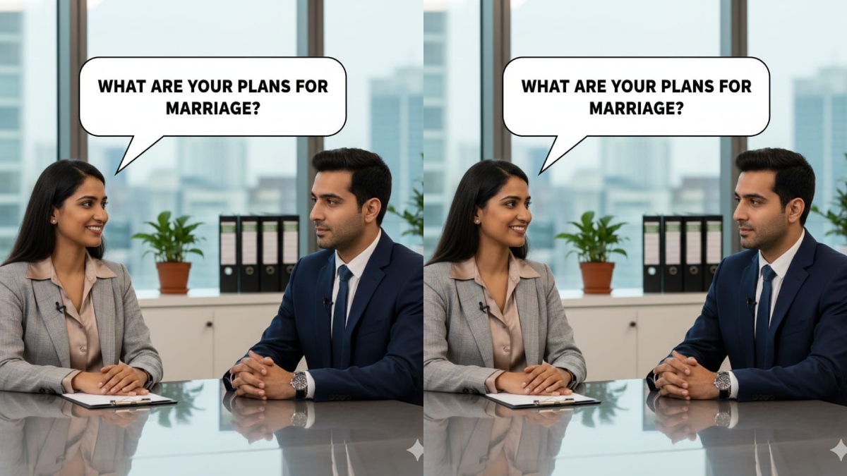 எனக்கு ஒரு நண்பன் உள்ளார். அவருக்கு 30 வயதில் தான் முதல் வேலை கிடைத்தது. ஏனென்றால் நீண்டகாலமாக அரசு பணிக்கு தயாராகி வந்தார். முதல் இண்டர்வியூவுக்கு அவர் அலுவலகத்துக்கு சென்றார். அப்போது எச்ஆர், ‛‛What are your plans for marriage?'' என்ற கேள்வியை முன்வைத்தார். இதற்கு என் நண்பர், ‛‛எனக்கு திருமணம் செய்யும் விருப்பம் இல்லை'' என்று குரலைஉயர்த்தி கூறினார் இருப்பினும் அதிர்ஷ்டவசமாக அவருக்கு வேலை கிடைத்துவிட்டது.