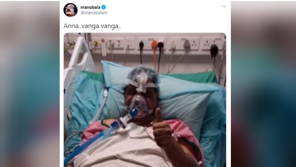 அதேநேரத்தில் இயக்குநரும் நடிகருமான மனோபாலா தமது ட்விட்டர் பக்கத்தில், அண்ணா வாங்க... வாங்க என்ற தலைப்பில் மருத்துவமனையில் எஸ்பிபி சிகிச்சை பெறும் படம் ஒன்றை வெளியிட்டிருந்தார். இந்த படத்தில் எஸ்பிபி கட்டை விரலை உயர்த்தி காட்டி இருக்கிறார்.