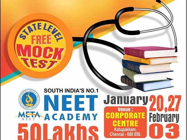 நீட் மாதிரி தேர்வினை தேசிய அளவில் புகழ்பெற்று விளங்கும் மெட்டா நீட் அகாடமி (META NEET ACADEMY) நடத்துகிறது.மாணவர்கள் நீட் தேர்வு எவ்வாறு இருக்கும் மேலும் அதற்குரிய 3 மணி நேரத்தில் தேர்வினை எவ்வாறு எதிர்கொள்வது என்பதை அறிய ஒரு நட்பயனாக இருக்கும். மேலும் தேர்வு சம்பந்தமான அச்சம் மாணவர்களிடையே விலகும்.