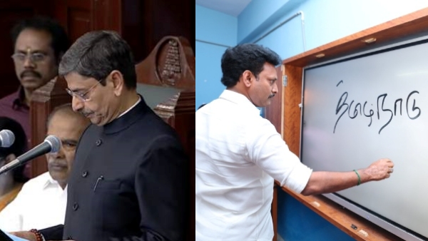 தொடர்ந்து, தமிழ்நாடு சட்டமன்ற கூட்டத்திலும், ஆளுநர் vs திமுக அரசு மோதல் முற்றியது. இந்நிலையில், அமைச்சர் அன்பில் மகேஷ் பொய்யாமொழி, 'தமிழ்நாடு' என்று மாணவர்களுக்கு எழுதிக் காட்டியது பரபரப்பை ஏற்படுத்தியுள்ளது.