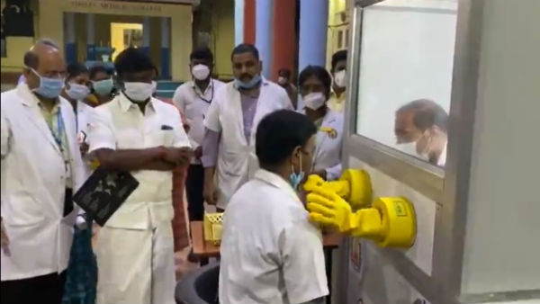 அந்த கவுன்ட்டருக்கு வெளியே ரத்த பரிசோதனைக்காக வந்த நோயாளி உட்கார்ந்திருப்பார். அந்த ஆய்வாளர் அந்த கவுன்ட்டரில் வைக்கப்பட்டுள்ள கையுறை இணைப்பில் கையை விட்டு ரத்தம் எடுப்பார். பின்னர் இந்த கை உறைகள் ஒவ்வொரு முறையும் சுத்தம் செய்யப்படும். இதன் மூலம் கொரோனா நோயாளியுடன் நெருங்கிய தொடர்பு இல்லாமல் இருக்கும். மிகவும் பாதுகாப்பாகவும் எளிதாகவும் ரத்தம் எடுக்கப்படும். இதை அமைச்சர் விஜயபாஸ்கர் ஆய்வு செய்தார்.