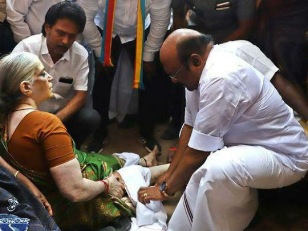 பாட்டியின் கால் மீது கிடந்த ஸ்பீக்கரை எடுத்து தூரப்போட்டார். உடனடியாக தன் பாக்கெட்டில் இருந்த கர்சீப்பை எடுத்து அந்த பாட்டியின் காலில் கட்டிவிட்டார். அங்கிருந்தோரை அழைத்து "ஆஸ்பத்திரிக்கு சீக்கிரமாக கூட்டிட்டு போங்க" என்று உத்தரவிட்டு அனுப்பி வைத்தார்.