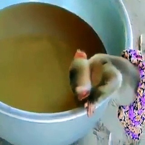வாளியில் இருந்த தண்ணீரில் தடுமாறி விழுந்து வெளியே வர முடியாமல் தத்தளித்த கோழிக்குஞ்சுக்கு கைகொடுத்து காப்பாற்றி அதை தாய் கோழியிடம் சேர்த்துள்ளது குரங்கு ஒன்று.