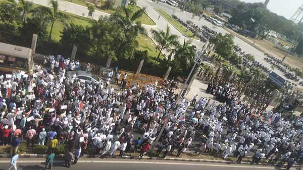 இதில் கலைவாணர் அரங்கிலிருந்து பேரணியாக சென்று சட்டசபையை முற்றுகையிட இஸ்லாமிய அமைப்புகள் முடிவு செய்துள்ளன. அதன்படி ஆயிரக்கணக்கான இஸ்லாமியர்கள் வாலாஜா சாலையில் திரண்டனர்.
