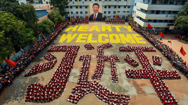 பாதுகாப்பு நடவடிக்கை ஒருபக்கம் என்றால், சீன அதிபரை வரவேற்கவும் படுதீவிரமாக ஏற்பாடுகள் நடக்கின்றன. தமிழக அரசு இதற்காக விரிவான ஏற்பாடுகளை செய்துள்ளது. மற்றொரு பக்கம், சென்னை கொளத்தூரிலுள்ள தனியார் பள்ளி மாணவ, மாணவிகள், ஜி ஜின்பிங் பெயரை, சீன மொழியில் எழுதுவது போல, அணிவகுத்து நின்று நடனம்புரிந்தனர். அவர்கள், ஜி ஜின்பிங் போல முகமூடியை அணிந்திருந்தனர்.