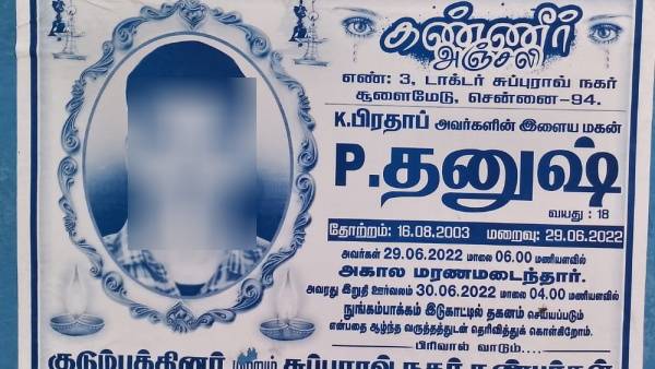 தற்கொலை உயிரை மாய்த்துக்கொண்ட இளைஞரின் பெயர் தனுஷ் என்பதாகும். சென்னை சூளைமேடு சுப்பாராவ் நகர் பகுதியைச் சேர்ந்த ஆட்டோ ஓட்டுநர் பிரதாப் என்பவரின் மகனாவார். பிரதாப்பின் மனைவி ஜெயந்தி இட்லி வியாபாரம் பார்த்து வருகிறார். இவர்களுக்கு 2 மகன்கள் உள்ளனர்.