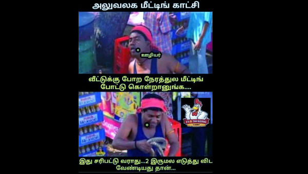 சென்னை: அலுவலகத்தை விட்டு போற நேரத்தில் மீட்டிங் போட்டு கொல்றானுங்களே... 2 இருமு இரும வேண்டியதுதான் என கலக்குகிறது மீம்ஸ்.