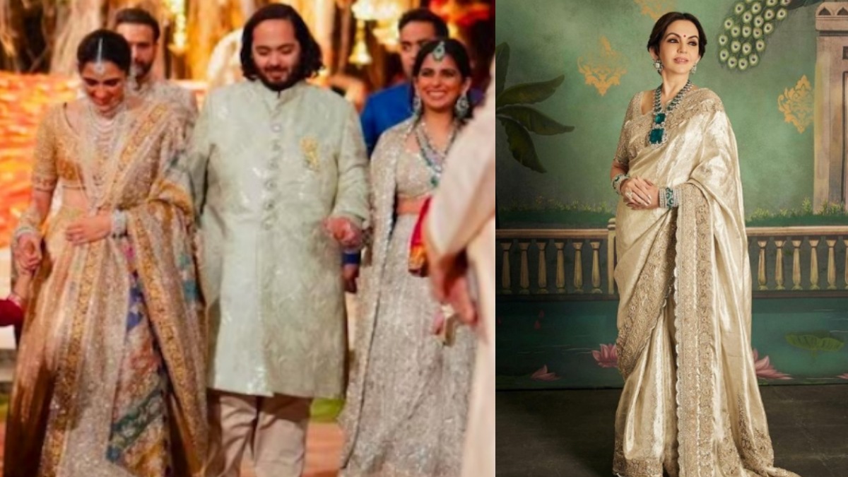 இந்த திருமண நிகழ்ச்சி விழாவில் நீடா அம்பானி ஒரு பட்டு புடவை அணிந்திருந்தார். அந்த புடவை காஞ்சிபுரம் நெசவாளர் நெய்தது. வெள்ளி ஜரிகை பதித்த அந்த புடவையில் அழகாக இருந்தார் நீடா. அந்த புடவைக்கு ஜர்தோஷி வேலைப்பாடுகளை செய்தவர் மணீஷ் மல்ஹோத்ரா.