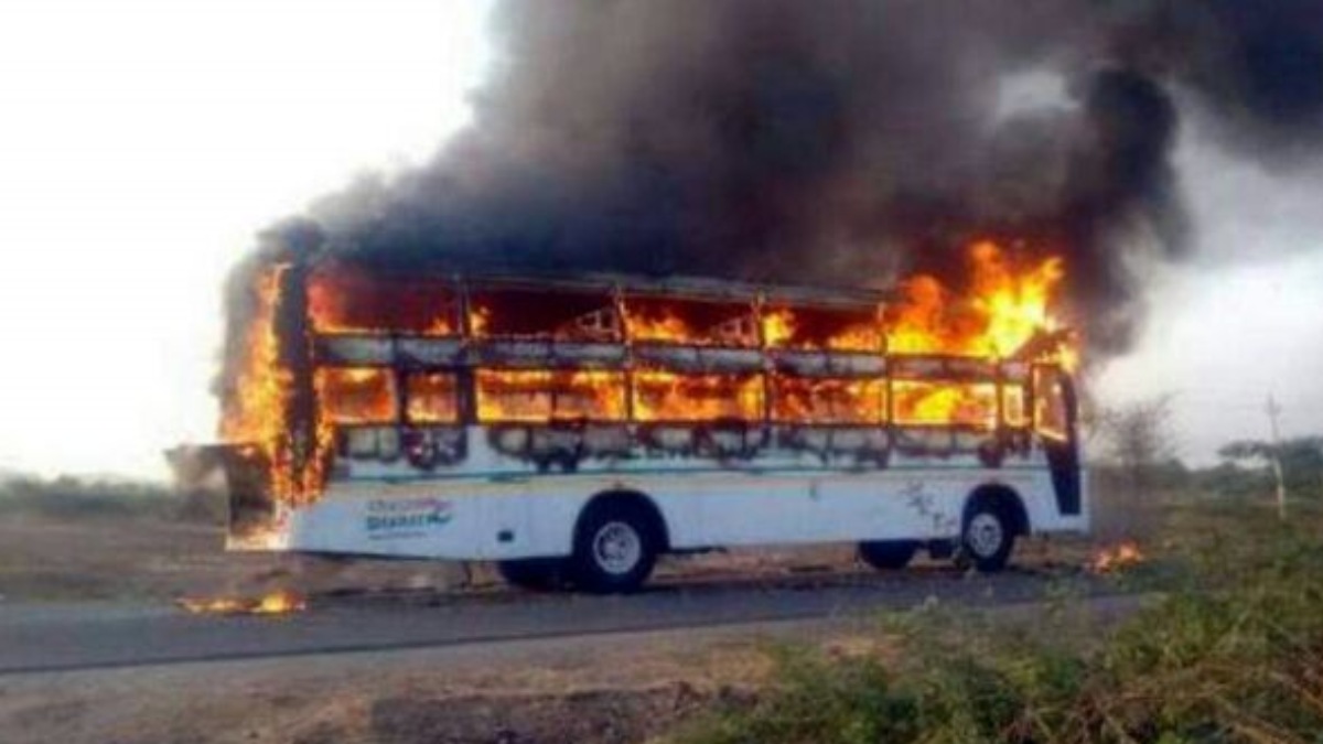 சென்னை கோயம்பேடு பேருந்து நிலையத்தில் இருந்து பெங்களூருக்கு தனியார் ஆம்னி பேருந்து ஒன்று இன்று காலை சென்று கொண்டிருந்தது. இது மின்சாரத்தில் இயங்கும் இ-பேருந்தாகும். இந்த பேருந்தில் 30 பயணிகள் இருந்ததாக கூறப்படுகிறது.